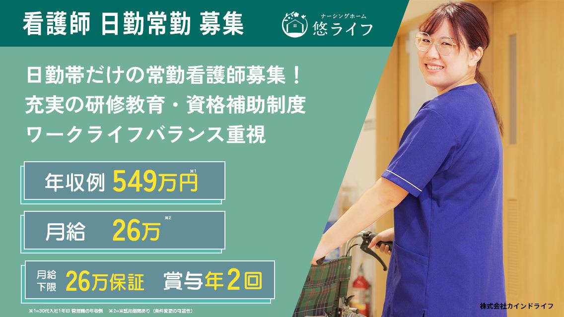 【正社員】施設内の訪問介護士【大垣】 入社祝い金5万円!月平均残業3時間以下!ライフワークバランスの取れる職場です!給与:月給275,000円〜282,000円賞与:年2回(夏季・冬季)昇給:年1回(人事評価制度あり)仕事内容住宅型有料老人ホームで、利用者様の生活全般に関わる援助をお願いします。 職種介護士 >介護士正社員 勤務地岐阜 >大垣 大垣 正社員 介護士 応 募 【正社員】施設内の訪問介護士 【梅林】 入社祝い金5万円!月平均残業3時間以下!ライフワークバランスの取れる職場です!給与:月給275,000円〜282,000円賞与:年2回(夏季・冬季)昇給:年1回(人事評価制度あり)仕事内容住宅型有料老人ホーム「ナーシングホーム悠ライフ梅林」で、利用者様の生活全般に関わる援助をお願いします。 職種介護士 >介護士正社員 勤務地岐阜 >梅林 正社員 介護士 梅林 応 募 【正社員】施設内の訪問介護士【六条】 入社祝い金5万円!月平均残業3時間以下!ライフワークバランスの取れる職場です!給与:月給275,000円〜282,000円賞与:年2回(夏季・冬季)昇給:年1回(人事評価制度あり)仕事内容住宅型有料老人ホーム「ナーシングホーム悠ライフ六条」で、利用者様の生活全般に関わる援助をお願いします。 職種介護士 >介護士正社員 勤務地岐阜 >六条 正社員 介護士 六条 応 募 【正社員】施設内の訪問介護士【草津】 入社祝い金5万円!月平均残業3時間以下!ライフワークバランスの取れる職場です!給与:月給275,000円〜282,000円賞与:年2回(夏季・冬季)昇給:年1回(人事評価制度あり)仕事内容サービス付き高齢者向け住宅で、利用者様の生活全般に関わる援助をお願いします。 職種介護士 >介護士正社員 勤務地滋賀 >草津 正社員 草津 介護士 応 募 【正社員】施設内の訪問介護士【彦根】 入社祝い金5万円!月平均残業3時間以下!ライフワークバランスの取れる職場です!給与:月給275,000円〜282,000円賞与:年2回(夏季・冬季)昇給:年1回(人事評価制度あり)仕事内容サービス付き高齢者向け住宅で、利用者様の生活全般に関わる援助をお願いします。 職種介護士 >介護士正社員 勤務地滋賀 >彦根 正社員 介護士 彦根 応 募 【正社員】施設内の訪問介護士【富山】 入社祝い金5万円!月平均残業3時間以下!ライフワークバランスの取れる職場です!給与:月給275,000円〜282,000円賞与:年2回(夏季・冬季)昇給:年1回(人事評価制度あり)仕事内容住宅型有料老人ホームで、利用者様の生活全般に関わる援助をお願いします。 職種介護士 >介護士正社員 勤務地富山 >富山 正社員 介護士 富山 応 募 【正社員】施設内の訪問介護士【金沢】 入社祝い金5万円!月平均残業3時間以下!ライフワークバランスの取れる職場です!給与:月給275,000円〜282,000円賞与:年2回(夏季・冬季)昇給:年1回(人事評価制度あり)仕事内容住宅型有料老人ホームで、利用者様の生活全般に関わる援助をお願いします。 職種介護士 >介護士正社員 勤務地石川 >金沢 正社員 介護士 金沢 応 募 【正社員】施設内の訪問介護士【新潟】 入社祝い金5万円!月平均残業3時間以下!ライフワークバランスの取れる職場です!給与:月給275,000円〜282,000円賞与:年2回(夏季・冬季)昇給:年1回(人事評価制度あり)仕事内容サービス付き高齢者向け住宅で、利用者様の生活全般に関わる援助をお願いします。 職種介護士 >介護士正社員 勤務地新潟 >新潟 正社員 介護士 新潟 応 募 【正社員】施設内の訪問介護士 【津新町】 入社祝い金5万円!月平均残業3時間以下!ライフワークバランスの取れる職場です!給与:月給275,000円〜282,000円賞与:年2回(夏季・冬季)昇給:年1回(人事評価制度あり)仕事内容サービス付き高齢者向け住宅で、利用者様の生活全般に関わる援助をお願いします。 職種介護士 >介護士正社員 勤務地三重 >津新町 正社員 介護士 津新町 応 募 【正社員】施設内中心の看護主任【津新町】 入社祝い金5万円!月平均残業5時間以下!ライフワークバランスの取れる職場です!給与:月給359,000円~400,000円賞与:年2回(夏季・冬季)昇給:年1回(人事評価制度あり)仕事内容住宅型有料老人ホームで利用者様の生活全般に関わる援助と、スタッフの育成をお任せします。 職種看護職 >看護師主任 勤務地三重 >津新町 正社員 津新町 看護主任 応 募 【正社員】施設内中心の訪問看護主任【草津】 入社祝い金5万円!月平均残業5時間以下!ライフワークバランスの取れる職場です!給与:月給359,000円~400,000円賞与:年2回(夏季・冬季)昇給:年1回(人事評価制度あり)仕事内容サービス付き高齢者向け住宅『ナーシングホーム悠ライフ草津』の看護主任として、利用者様の生活全般に関わる援助と、スタッフの育成をお任せします。 職種看護職 >看護師主任 勤務地滋賀 >草津 正社員 草津 看護主任 応 募 【正社員】施設内中心の訪問看護主任 【新潟】 入社祝い金5万円!月平均残業5時間以下!ライフワークバランスの取れる職場です!給与:月給359,000円 〜 400,000円賞与:年2回(夏季・冬季)昇給:年1回(人事評価制度あり)仕事内容サービス付き高齢者向け住宅『ナーシングホーム悠ライフ新潟』の看護主任として、