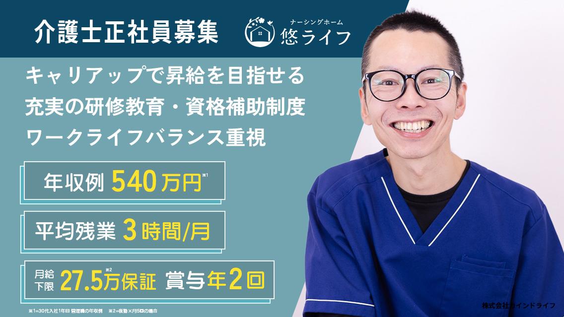 住宅型有料老人ホーム「ナーシングホーム悠ライフ福島」で、利用者様の生活全般に関わる援助をお願いします。